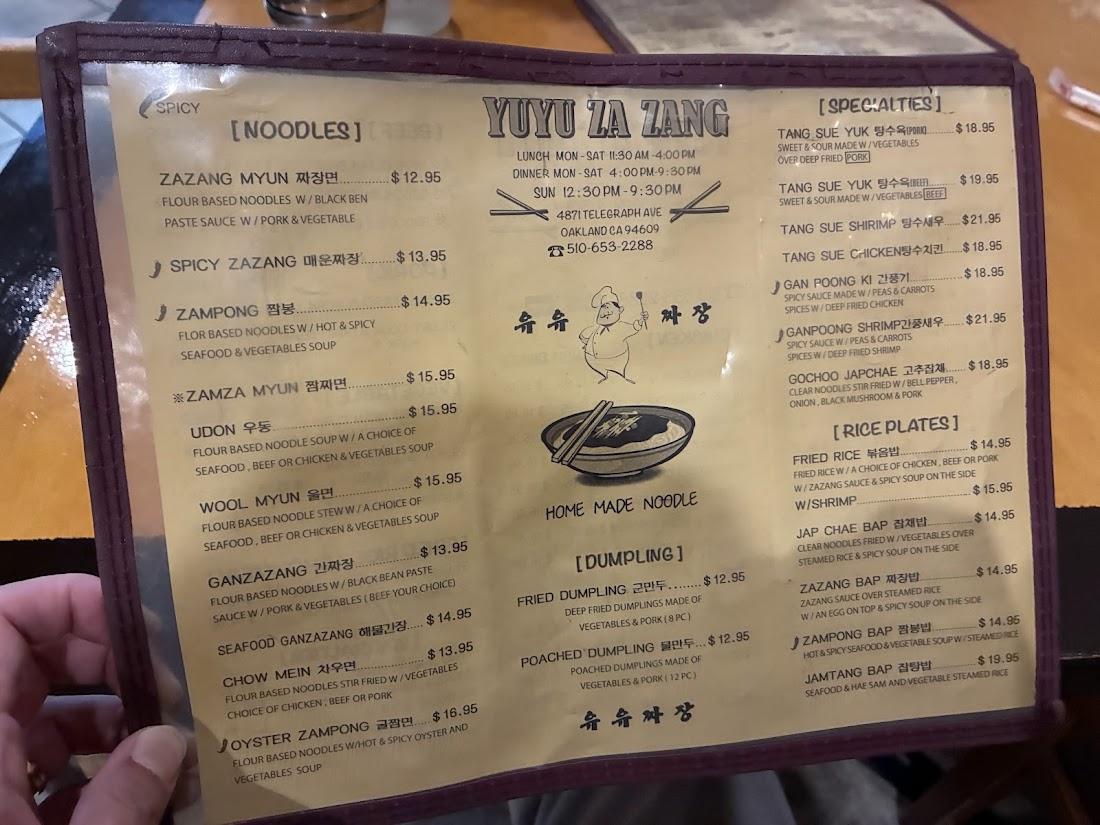 Yuyu Za Zang operates as a cherished family-run gem on Oakland’s Telegraph Avenue, where a single dedicated woman manages front-of-house operations, backed by a skilled cook in the kitchen. This duo crafts Korean-style Chinese dishes with authentic flavors rooted deeply in tradition yet tailored for local tastes. Menu favorites like the Zazang Myun, rich with black bean sauce and pork, and the fiery jjamppong offer an experience that regulars call both comforting and exciting.